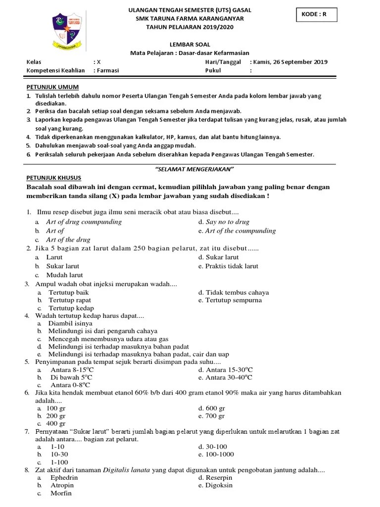 Menawarkan semua pelajaran farmasi seperti ilmu resep ataupun farmasetika dasar. Membaca materi, pengerjaan jurnal, latihan untuk menguji pemahaman,etc. Ngkap , rpp smk farmasi ilmu resep , rpp smk farmasi 2013 , rpp smk farmasi ktsp , rpp smk farmasi. Di bawah ini yang bukan pelarut, adalah. Kumpulan soal ujian nasional produktif farmasi.